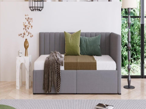 [Classic Design] This classic design day bed adopts a semi-closed design concept, linen fabric is dirt-resistant and wear-resistant, and equipped with two movable drawers, which is functional and beautiful.