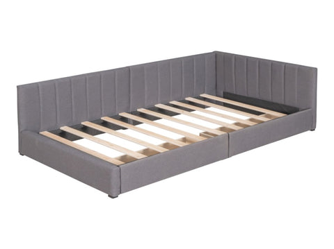 [No Box Spring is required] This twin-sized bed frame comes with many wooden slats, and as such this bed doesn't require a box spring. Mattress is not included. backrest is included as a comfy linen fabric backrest that brings you and your partner a cozy feeling.