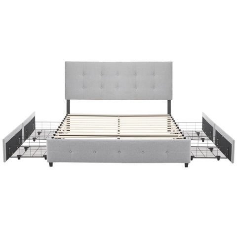 Upholstered Queen Platform Storage Bed Frame with 4 Drawers, Adjustable Headboard with Button Tufted 45724648