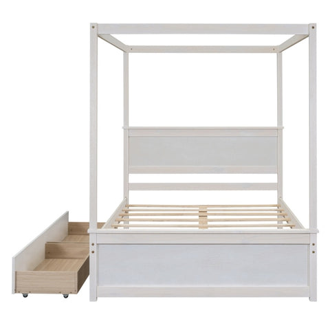 Wood Canopy Bed with two Drawers, Full Size Canopy Platform bed With Support Slats .No Box Spring WF303304AAK