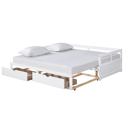 Wooden Daybed with Trundle Bed and Two Storage Drawers , Extendable Bed Daybed,Sofa Bed for Bedroom WF194973AAK